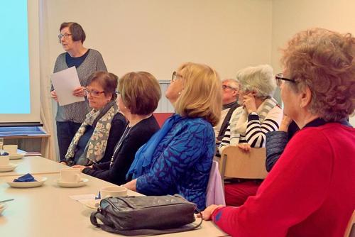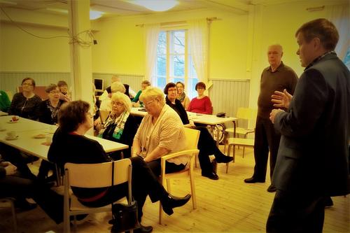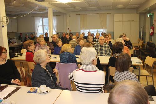 Helmikuun tapaamisessa varatuomari TUULIKKI PETÄJÄNIEMI kertoi jokaisella ikäihmiselle täsrkeästä asiasta, edunvalvontavaltuutuksesta. Hän selvitti mitä se tarkoittaa, miksi se kannattaa tehdä ajoissa ja muut asian yksityiskohdat. Tuulikkia tuli kuuntelemaan tuvan täydeltä senioreita.