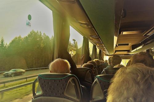 Kotkassa suunniteltu opastettu kierros Sapokan vesipuistoon jäi väliin sateen vuoksi, ihailimme puistoa vain bussin ikkunasta. Kierros korvattiin kaupunkikierroksella.